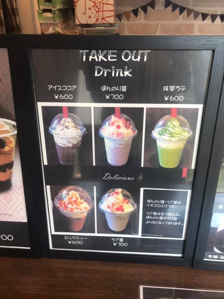 クレープ、パフェ、ドリンクがお持ち帰りできます。