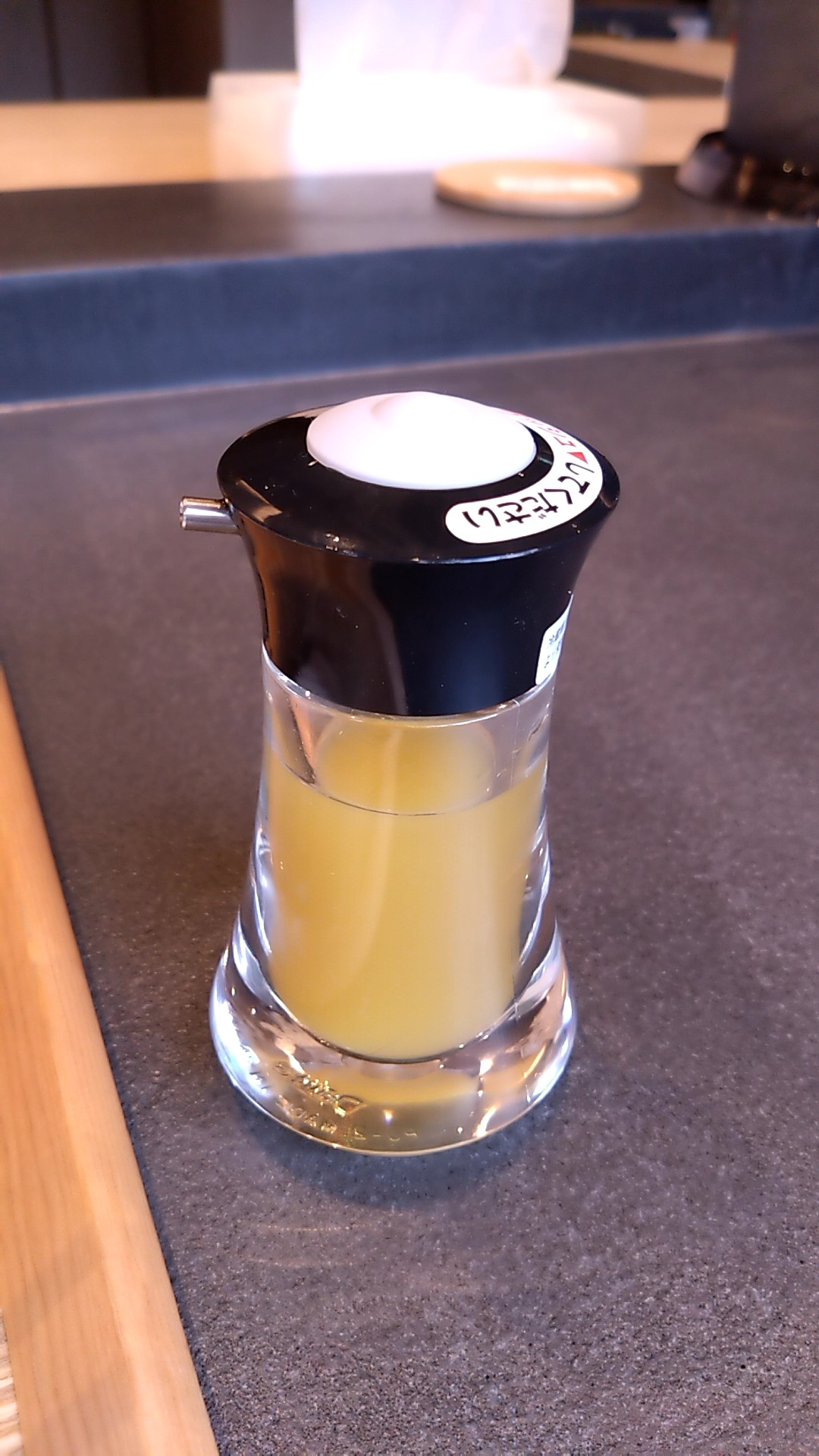 カウンター上に置いてあるこの「柑味酢」で味変ができます。